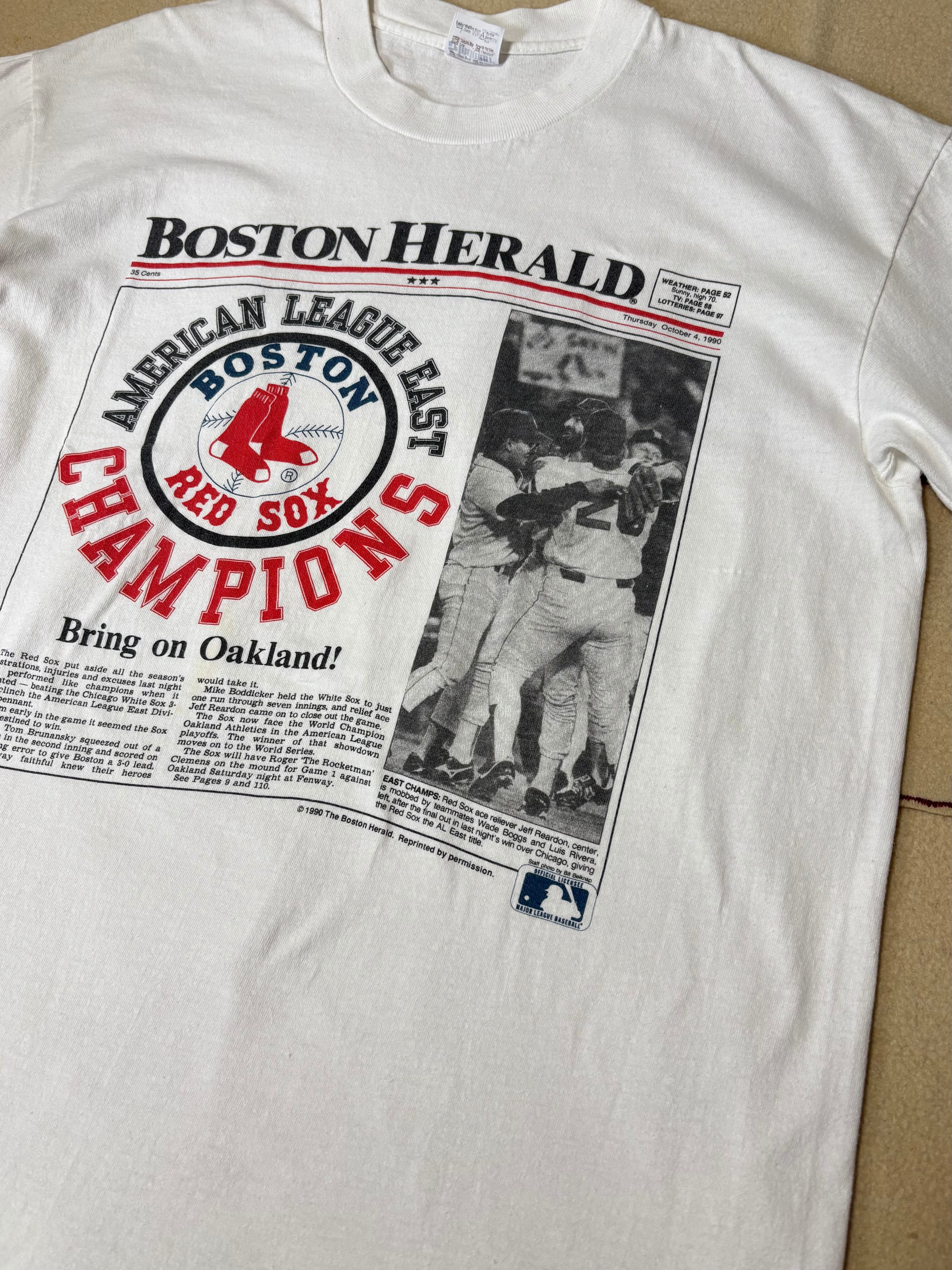 【Stedman body】1990y BOSTON HERALD"Boston Red Sox" Newspaper Printed T-shit【90s】