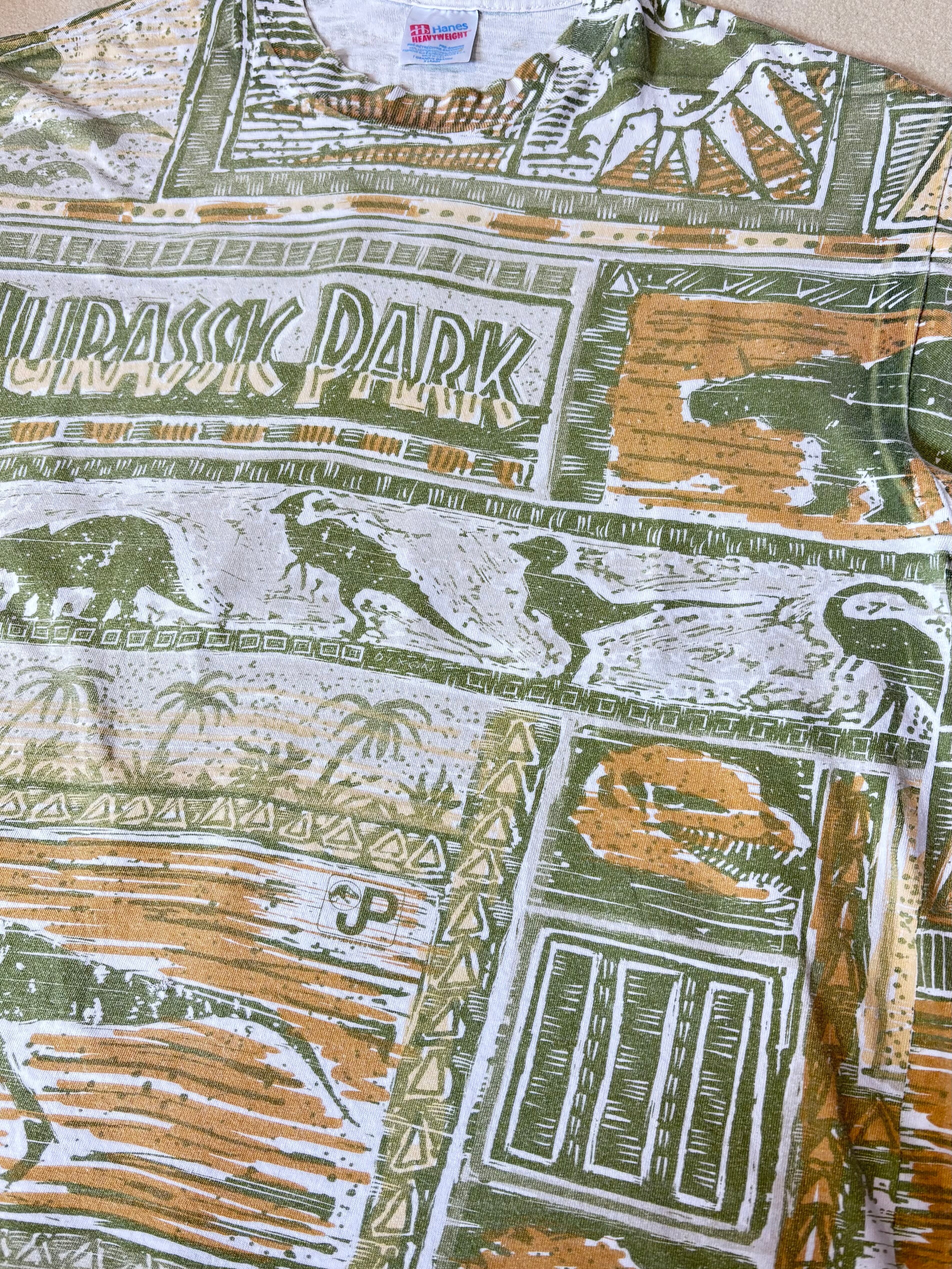 90年代ジュラシックパークの総柄プリントTシャツです。