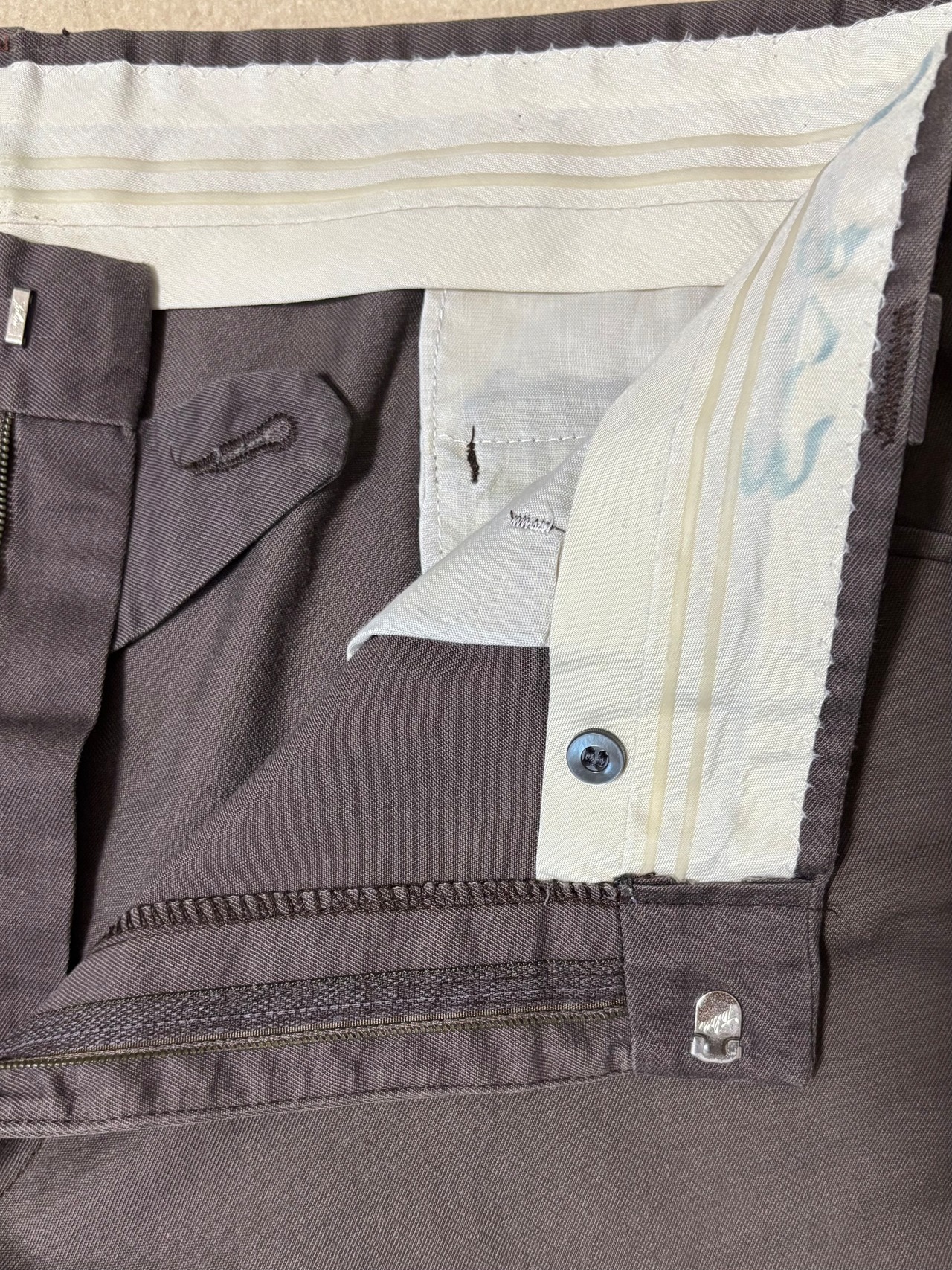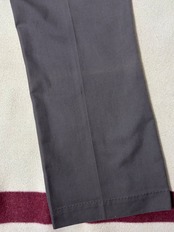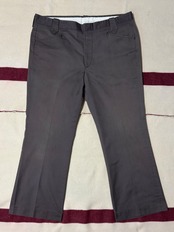 ブラウン寄りのチャコールグレーが退色した雰囲気の良いカラーで、ブーツカットやフラップポケットのボタン等ウエスタン仕様のスラックス。